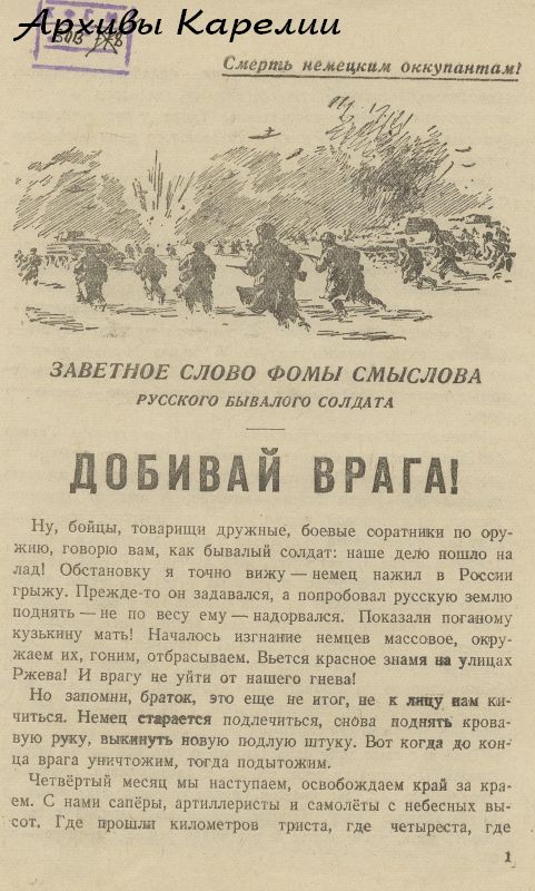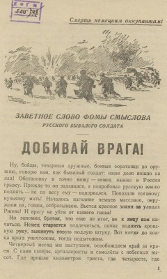 Листовка''Заветное слово Фомы Смыслова''.1944 г.Из фондов КГКМ