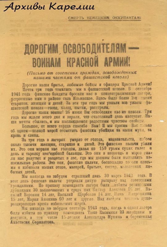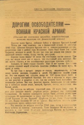 Листовка''Дорогим освободителям - воинам Красной Армии!''.1944 г.Из фондов КГКМ