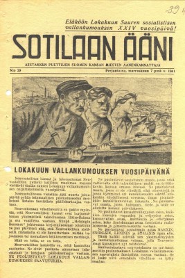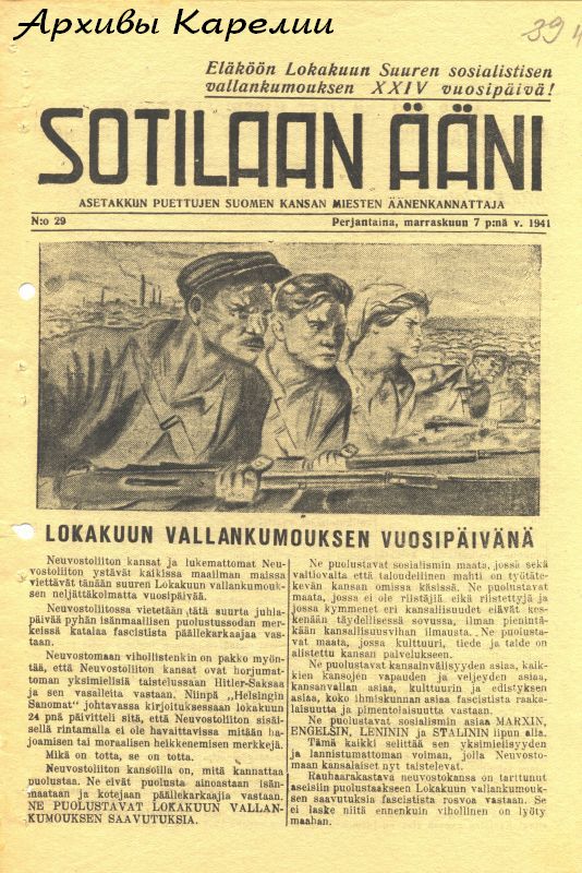 Советская агитационная листовка ''Sotilaan ääni'' (''Голос воина'')на финском языке.1941 г.Из фондов НА РК
